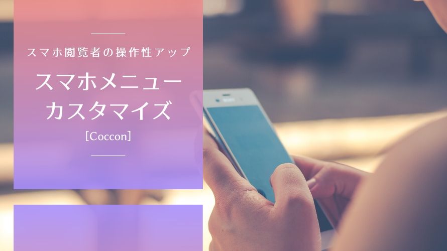 メニュー表示 未分類 2020.09.18 スマホ閲覧者の操作性アップ。スマホメニューカスタイマイズ[Cocoon]ブログを読むとき、何で閲覧していますか?私はブロガーさんの記事を読むときはスマホが多いです。ですが、自分が記事を書くときはPC。そうなんです。自分のブログはPCで見ることが多いんですよ。記事の確認などもPCで行います。読者の立場だとスマホな